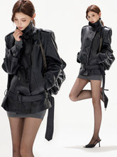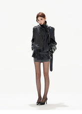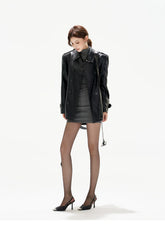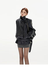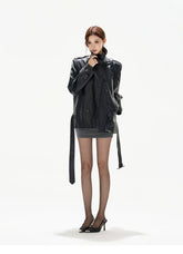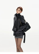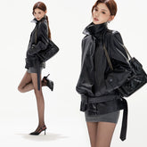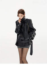 Double-Breasted Belted Faux Leather Jacket