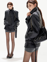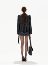 This original designer jacket delivers a bold, cool-girl attitude with sharp tailoring and a structured silhouette. Designed with a sleek stand collar and classic double-breasted front, it features a belted waist that allows adjustable shaping for a clean yet powerful profile. The mid-length cut enhances versatility, while the crisp construction gives the jacket a refined, confident edge. Perfect for transitional seasons, this piece elevates everyday styling with modern toughness and polished sophistication.