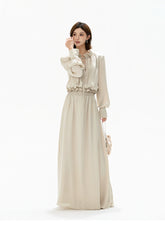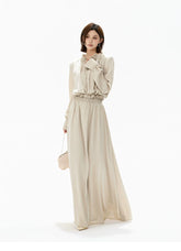 Elegant Ruffled Collar Satin Maxi Dress
