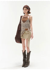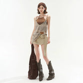 This original designer two-piece set blends edgy femininity with a relaxed, fashion-forward silhouette. The beaded halter cami features a sculpting fit that highlights the neckline and shoulders, delivering a bold, sexy appeal with refined detailing. Paired with a lightweight textured floral sheer cover-up, the look creates an effortless layered effect that feels airy, modern, and chic. Designed for styling versatility, this set transitions seamlessly from statement standalone wear to elevated layering, perfect for summer outings, vacations, or creative street styling.
