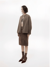 A refined short wool-blend coat crafted for effortless sophistication. This piece combines soft Merino wool with durable cotton yarns, presenting a structured yet comfortable silhouette. The minimalist tailoring and cropped length create a modern proportion that flatters any figure — perfect for early autumn layering over turtlenecks or slim-cut trousers.