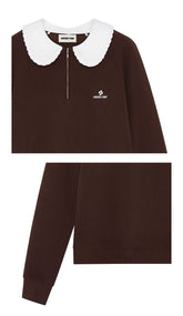 A chic and contemporary sweatshirt from SHUSHU/TONG’s 2025 Autumn Collection, designed with a refined loose silhouette and an elegant detachable Peter Pan collar. This piece perfectly merges comfort and sophistication, reflecting SHUSHU/TONG’s signature blend of youthful romanticism and confident individuality. The soft cotton fabric ensures breathability and ease, while subtle structural tailoring adds a touch of modern polish — ideal for both casual outings and elevated daily looks.