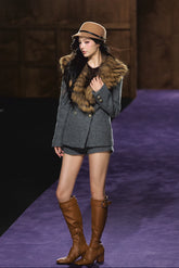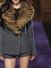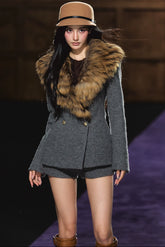 Detachable Fur Collar Wool Tailored Blazer & Shorts Set