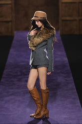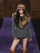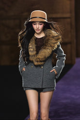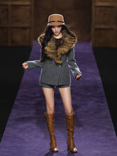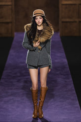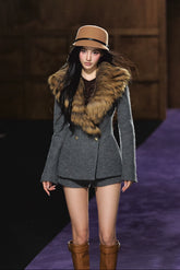 This elegant two-piece set features a refined wool blazer and matching mini shorts, exuding modern sophistication with a touch of vintage charm. The blazer is designed with a detachable plush fur collar, structured shoulders, and a cinched waistline for a flattering silhouette. The coordinating wool shorts complete the look with a chic, leg-lengthening effect. Crafted from premium wool blend with a soft lining, this ensemble transitions effortlessly from day to evening with timeless style and warmth.