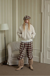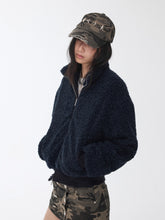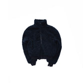 This fitted short jacket is designed with a structured silhouette that ensures a sharp, flattering look. The dual-zip front allows versatile styling and collar variations, while the hem and cuffs feature a creative distressed rib-knit finish — adding a hint of street-style attitude to the soft fleece texture. Crafted from high-quality lamb-style fleece fabric, it offers a plush, warm touch that feels gentle against the skin. The overall design balances material richness and refined detailing, making it a must-have piece that blends effortlessly into everyday wear while highlighting modern individuality.