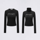 A refined winter essential designed with a soft, skin-friendly texture and a sleek, slim silhouette. This knit top features delicate rhinestone embellishments that elevate its simple elegance while maintaining everyday comfort. The brushed interior adds gentle warmth, making it perfect as a base layer or worn alone for a polished winter look.