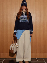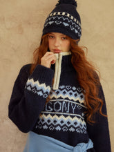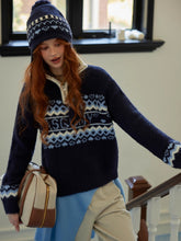 A cozy and refined Fair Isle zip-up knit sweater featuring a charming heart motif and subtle lettering design. The soft wool-blend fabric offers a plush, skin-friendly texture, combining warmth with a touch of vintage Nordic flair. Its relaxed silhouette and gentle color palette make it effortlessly versatile, while the matching knit hat completes the look with a chic, coordinated finish. Perfect for creating a soft, elegant winter ensemble.