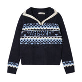 Fair Isle Heart Zip-Up Matching Hat Knit Sweater