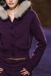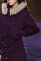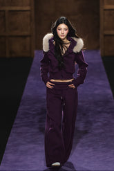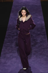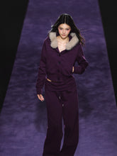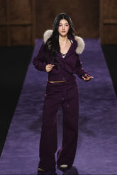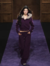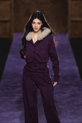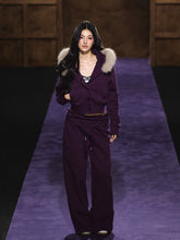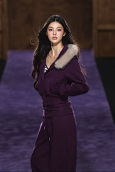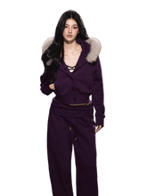 This cozy two-piece set combines a relaxed cropped hoodie with a pair of flattering jogger-style sweatpants, creating the perfect balance of comfort and style. The hoodie features a soft faux fur collar and hood for added warmth and texture, while the short silhouette enhances the waistline for a chic, effortless look. The matching joggers offer a slim, flattering fit with a fold-over waistband that accentuates the figure. Ideal for casual outings or cozy days, this set redefines laid-back luxury.