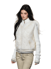 A statement winter piece that merges luxurious faux fur with soft knit panels in a sophisticated two-in-one design. This vest-style sweater features a plush faux fur body with subtle knit sleeves and trim, creating a perfect balance between warmth and style. The cropped silhouette and delicate texture layering make it a chic option for both casual and refined winter looks, offering warmth without bulk.
