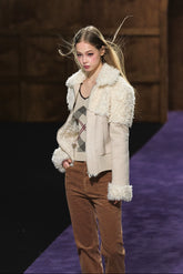 This luxurious faux shearling jacket blends warmth with refined style. Designed with a plush fur-textured exterior and a soft faux-leather finish, it offers a rich tactile feel and premium comfort. The structured silhouette and belted waistline create a flattering, slim-fit look, while the thick plush lining provides exceptional insulation. Perfect for winter days, it brings together elegance and functionality for an effortlessly chic, cozy ensemble.