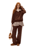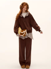 This casual two-piece set blends preppy style with cozy modern comfort. The oversized hoodie features plaid patchwork detailing and a soft fleece lining, adding warmth and texture to your winter look. The elastic-waist wide-leg pants complete the silhouette with a relaxed fit that flatters every figure. Perfect for off-duty days, lounging, or casual outings — it delivers effortless style and all-day comfort in one refined ensemble.