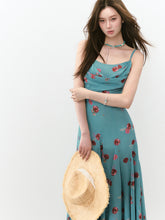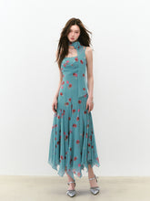 Flowing Flower Waist-cinched Cowl-neck Dress