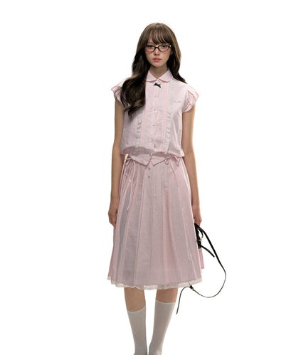 Flutter Sleeve Drawstring Shirt & Skirt