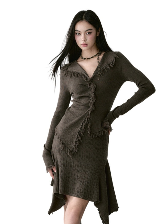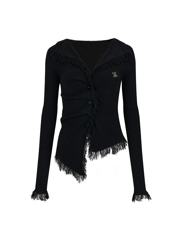 Frayed Hem Irregular Sweater Cardigan - CHINASQUAD