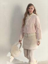Crafted from lightweight yet insulating down fabric, this jacket offers cloud-like softness and gentle warmth. The outer shell has a subtle sheen and smooth hand feel, while the interior features a soft knitted lining that wraps you in cozy comfort. The slightly oversized silhouette provides structure without bulk, ideal for layering through winter. The integrated hood with knit drawcord ties adds a youthful, relaxed touch, and the dual metal zip closure enhances practicality and modern flair. Hidden side pockets keep hands warm and essentials close, while the delicate knit details bring a sense of refined texture and warmth that perfectly balances function and style.