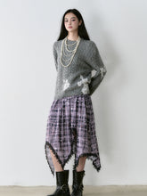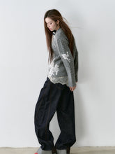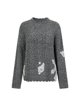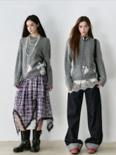 Gray Lace Panel Crewneck Sweater - CHINASQUAD