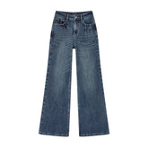 These high-waisted jeans are crafted from premium heavy-weight stretch denim, designed to sculpt and flatter the silhouette. The subtle flare at the hem elongates the legs, creating a balanced and elegant shape. Combining a structured yet comfortable fit, they are ideal for versatile styling — from casual streetwear to elevated everyday looks.