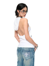 This striking sleeveless bodycon dress features a bold Y2K design with a hooded top and a revealing backless cut. The dress showcases a mix of color-blocking details with sparkling rhinestone accents across the front, adding a touch of glamour. The slim fit hugs the body in all the right places, making it perfect for a summer night out or a casual yet edgy streetwear look. The unique combination of casual hoodie elements and the body-hugging silhouette creates a stylish contrast for a modern, playful vibe.