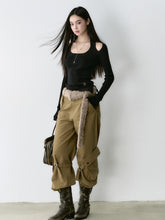 Khaki Loose-fit Cargo Straight-leg Pants - CHINASQUAD