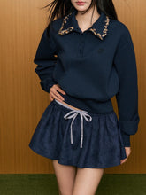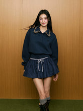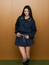 Knit Striped Collar Polo Sweatshirt & Skirt Set