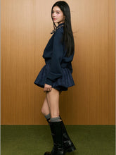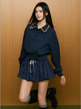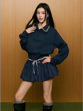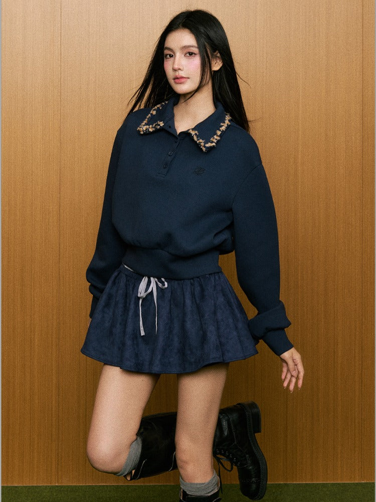 Knit Striped Collar Polo Sweatshirt & Skirt Set - CHINASQUAD