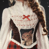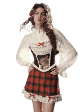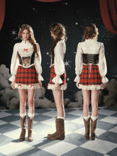 This French-inspired Christmas-themed two-piece set blends sweet and bold aesthetics with a refined vintage touch. The structured corset-style bustier features classic fishbone detailing that shapes the waist and enhances the silhouette, while the plaid midi skirt adds a festive, retro charm. Designed as a statement holiday outfit, the set balances playful sweetness with subtle edge, making it perfect for Christmas gatherings, seasonal parties, photoshoots, and styled winter looks. Worn together or separately, it delivers strong design presence with romantic French flair.