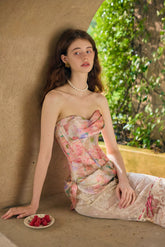 Romantic Oil-Paint Lace Corset Top & Skirt Set