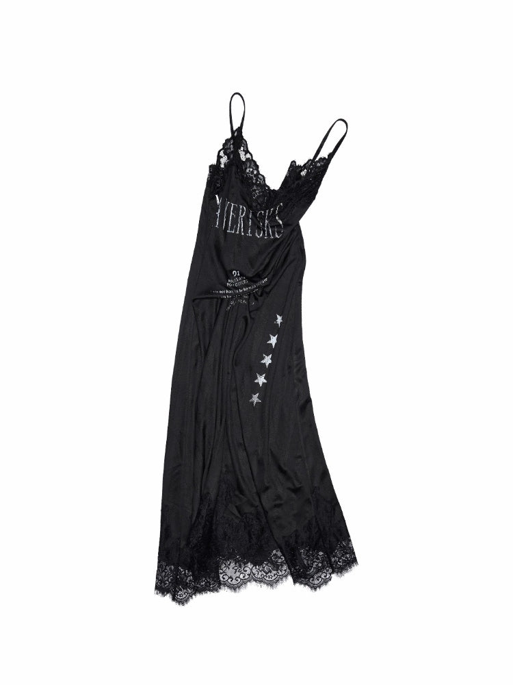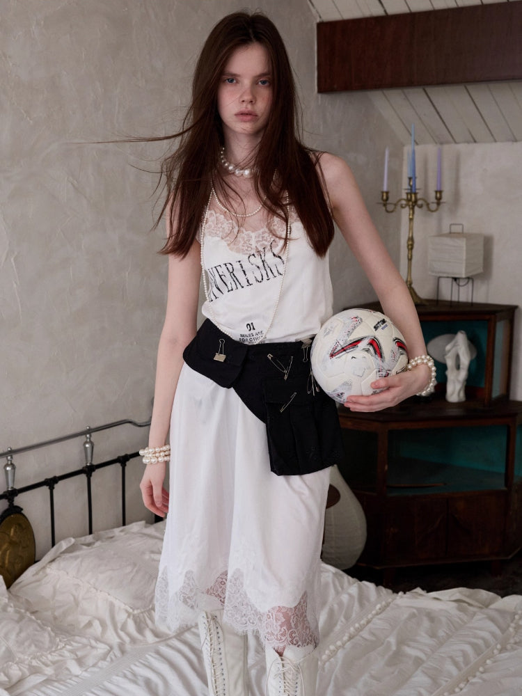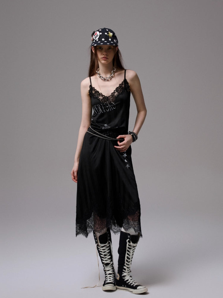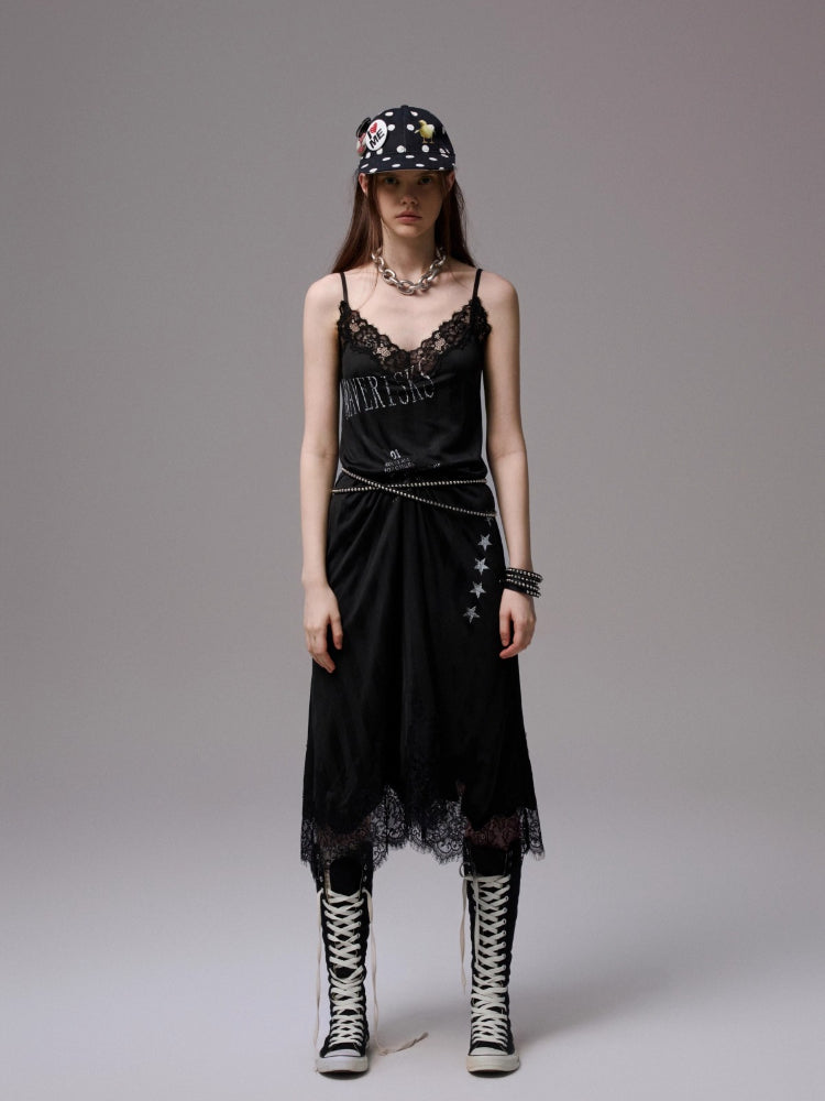 Letter-printed Spliced Lace Camisole Dress - CHINASQUAD