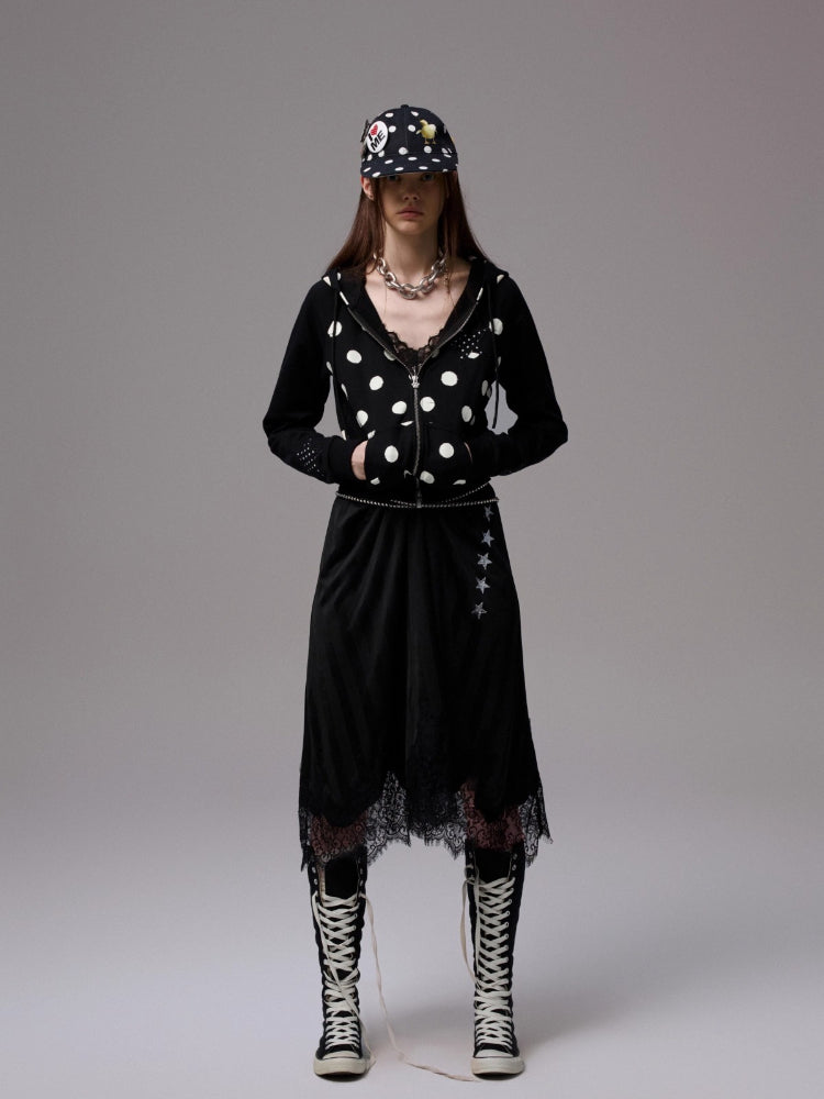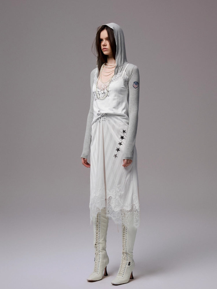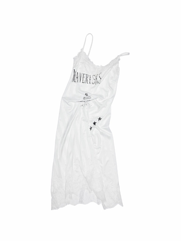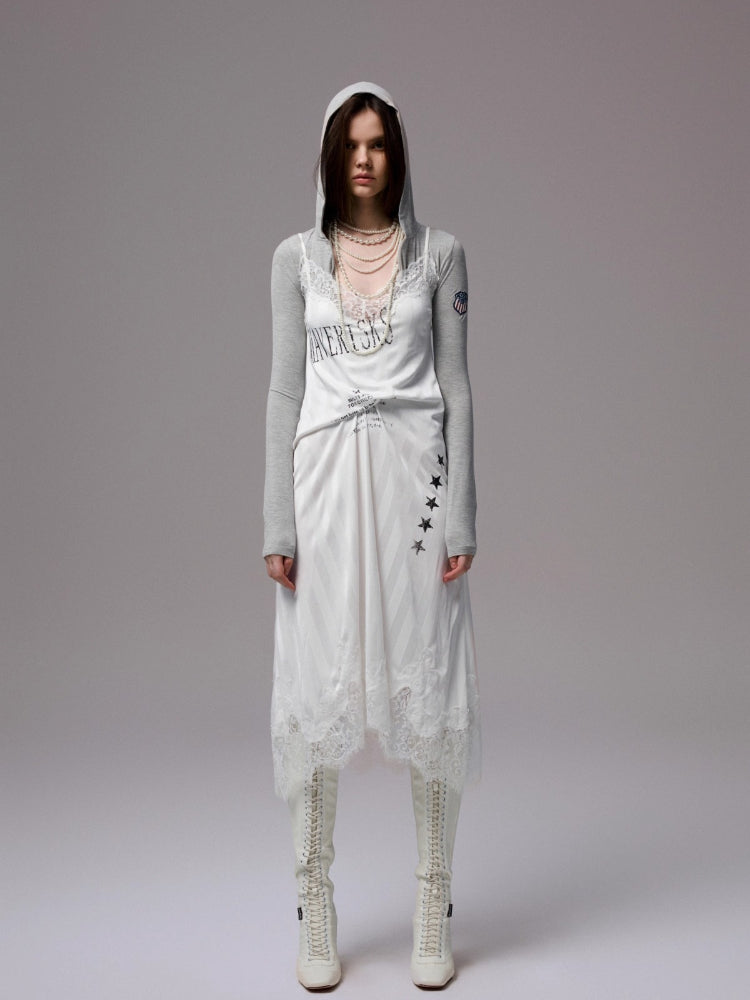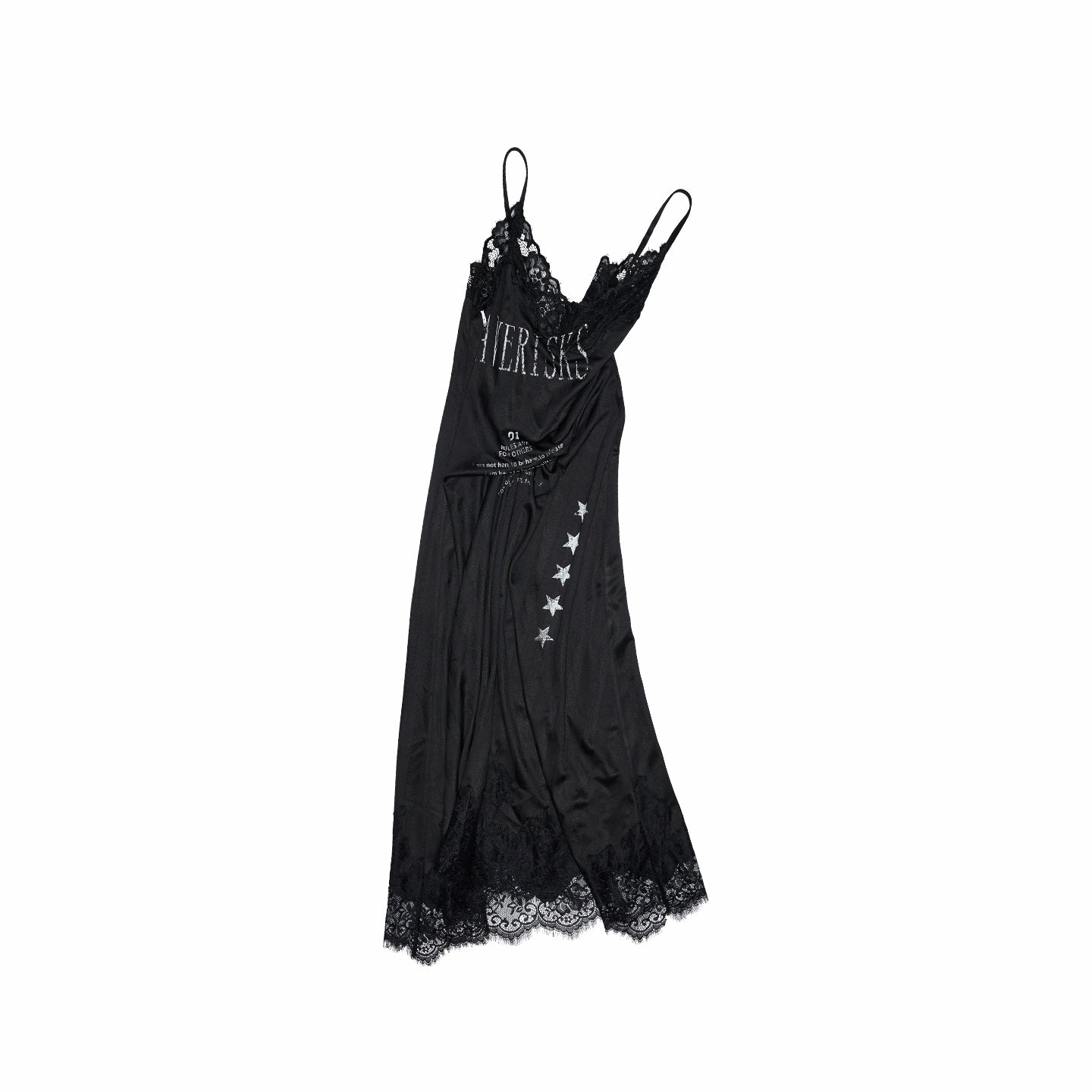 Letter-printed Spliced Lace Camisole Dress - CHINASQUAD