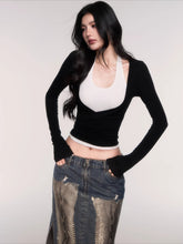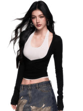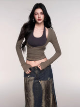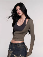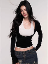 A modern two-piece top set designed with a relaxed yet subtly sensual aesthetic. Featuring a halter-style inner layer paired with a fitted long-sleeve outer top, this design creates a naturally layered look with strong visual interest. The slim-fit cut contours the body to highlight the waist and enhance proportions, balancing effortless comfort with refined femininity. Perfect for daily styling, casual outings, or elevated streetwear looks with a confident, understated edge.