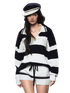 A nautical-inspired set featuring a relaxed stripe polo sweater and matching skirt-pants. Detailed size charts for both top and skirt-pants included.