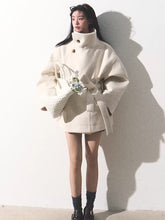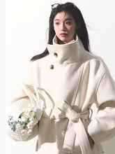 A refined short-length wool coat inspired by the softness of drifting clouds. Designed with a clean stand collar and a gently cinched waist, this piece creates a structured yet feminine silhouette. The lightly padded construction enhances warmth without bulk, making it ideal for autumn and winter wear. With its minimalist tailoring and soft volume, this coat delivers a calm, elevated elegance suited for both daily styling and polished occasions.