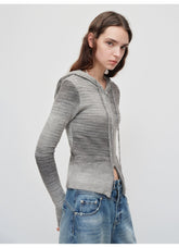 A modern expression of quiet luxury, this ombre wool-blend cardigan captures the essence of fluid motion and subtle structure. Featuring a double-zip front design and a softly contoured hood, it blends functionality with refined aesthetics. The gradient tone transitions smoothly, echoing the rhythm of calm urban life while enhancing layering versatility. With its gentle warmth and flexible silhouette, it effortlessly balances style and comfort for the autumn-winter season.