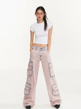 Product Name: Pink Vintage Washed Cargo Jeans