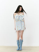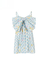 Plaid Floral Bow Print Spaghetti Strap Dress
