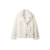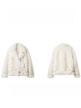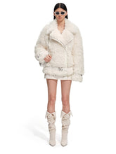 From the Polar Series, this Cloud-Touch Faux Shearling Jacket blends tactile luxury with modern functionality. The body features a soft eco-friendly faux shearling made from high-density recycled fibers, mimicking the natural curl and volume of real lamb fleece. It’s lightweight yet warm, anti-static, and exceptionally smooth to the touch. The contrasting cloud-textured vegan leather shell has a delicate matte finish that replicates the richness of genuine leather while remaining flexible, breathable, and easy to maintain. With its relaxed moto-inspired silhouette and plush lamb fleece lining, this jacket merges warmth and sustainability with a contemporary edge.