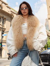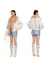 This statement jacket blends natural warmth and modern craftsmanship, combining premium shearling textures with classic denim structure. The soft, voluminous wool collar adds luxurious comfort and insulation, while the high-support twill denim base ensures durability and a refined, structured fit. Filled with 90% white duck down, it offers exceptional warmth without bulk. The design merges tactile contrast with practical elegance — cozy, breathable, and stylishly relaxed for cold-weather layering.