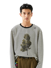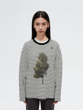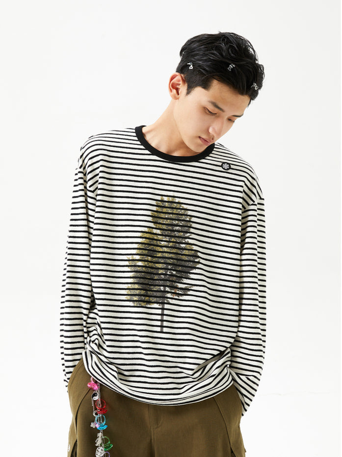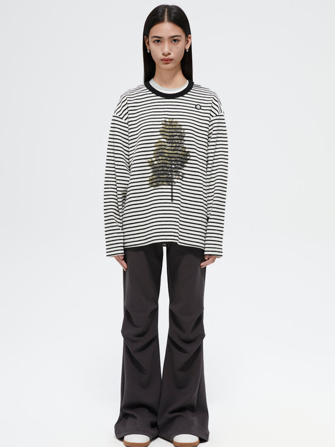 Printed Loose Striped Terry Long-Sleeve T-Shirt