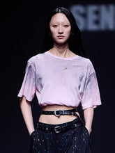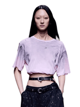 A relaxed-fit cotton T-shirt designed with a custom looped logo graphic and spray-print distressed effect for a bold, street-inspired look. Crafted for Spring/Summer wear, this piece features a clean crew neckline and an easy silhouette that delivers everyday comfort with a fashion-forward edge. The washed, sprayed finish adds character and individuality, making it a versatile statement tee for casual styling.