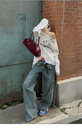 Vintage Washed Spray-Effect Long-Sleeve T-Shirt