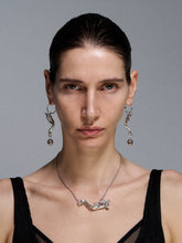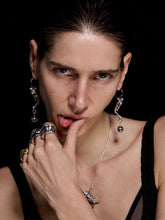 Channeling M2M’s avant-garde philosophy of “reshaping the philosophy of romance,” these vintage silver mermaid drop earrings reinterpret punk individuality through fluid, sculptural lines. The elongated silhouette draws inspiration from the graceful movement of mermaid forms, while the distressed silver finish adds a nostalgic, textured depth. Balancing rebellion and elegance, these earrings embody contemporary sophistication — a striking accessory that effortlessly enhances both everyday and statement looks.