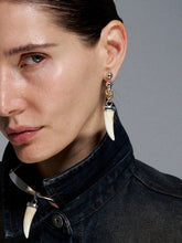 From M2M’s “Reconstruction Series,” these punk-inspired earrings reinterpret classic romance through raw metallic textures and sculptural design. Featuring an oxidized silver finish and a bold fang-and-bone motif, the earrings embody an avant-garde fusion of rebellion and refinement. Their asymmetrical form and distressed detailing reflect M2M’s commitment to breaking traditional symmetry and blending subculture elements with wearable artistry—perfect for those who embrace individuality with a sense of understated luxury.