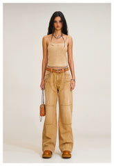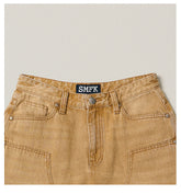 From the SMFK COMPASS collection, these wide straight cargo pants reinterpret utilitarian denim through the brand’s balanced approach to structure and material. Made from lightweight custom-woven denim, the piece features a soft drape and a matte, hand-weathered finish that evokes the textures of open plains and pastoral landscapes. The relaxed silhouette offers effortless versatility, making it ideal for transitional seasons. Combining a refined workwear cut with SMFK’s signature craftsmanship, this design delivers a timeless yet contemporary statement.