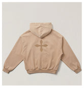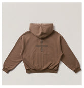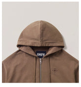 From the SMFK ICON collection, this oversized zip hoodie carries the brand’s signature blend of raw natural tones and animalistic energy. Originating from SMFK’s 2016–2017 debut series, the design has evolved over the years into a defining modern classic. Crafted from 600g heavyweight cotton knit, it offers a structured yet soft texture with a matte, stone-washed finish that enhances depth and tactility. Detailed with a chain-stitched cross emblem on the chest and a COMPASS FLAG graphic on the back, this piece embodies understated power and timeless streetwear attitude.