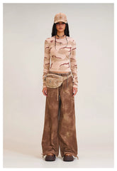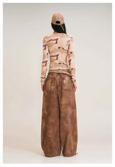 From the SMFK RAGE Handcrafted Workwear Series, this piece draws inspiration from the concept of “Visible Time,” showcasing the passage of craftsmanship through texture and tone. The pants are crafted from 100% cotton using advanced hand-dyeing and bleaching techniques that create a naturally weathered and speckled vintage look. The muted earth-tone palette and SMFK’s signature black-and-white balance lend a sense of depth and timelessness.
