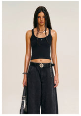 A retro-inspired moto-style tank top crafted from premium washed cotton for a casual yet structured look. The cropped silhouette adds a modern streetwear touch, while the soft, breathable texture ensures comfort and versatility. Perfect for layering or wearing solo, it blends industrial aesthetics with effortless fashion attitude.