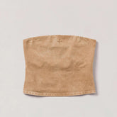 Part of SMFK’s 2025 VINTAGE collection, this strapless top draws inspiration from 1990s workwear craftsmanship. Designed with a structured silhouette and reinforced elastic lining, it offers both shape and comfort. The garment features SMFK’s signature fade-dye process, creating a unique matte washed texture with subtle tonal variations. The slow washing treatment enhances the cotton’s softness and tactile feel, giving the piece a relaxed yet refined vintage finish. A COMPASS FADE cross logo print at the neckline completes the look with understated detail.