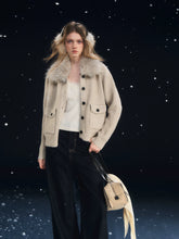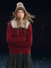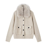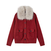 A refined cardigan designed with a classic ribbed knit texture and a detachable fur collar for versatile styling. Featuring a clean, feminine silhouette, this piece balances warmth and elegance, allowing easy transitions between a cozy winter look and a minimalist everyday style. The soft-touch knit ensures comfort, while the removable collar adds a subtle statement detail, making it a practical yet elevated layering essential for autumn and winter.