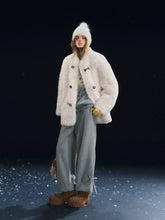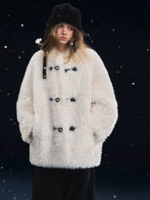 A cozy outerwear piece designed with a soft, fluffy texture and a clean button-up front. This jacket features a relaxed silhouette with dropped shoulders, delivering an effortless balance of warmth and casual style. The plush fleece surface enhances comfort while maintaining a minimalist, versatile look, making it ideal for everyday layering during autumn and winter.